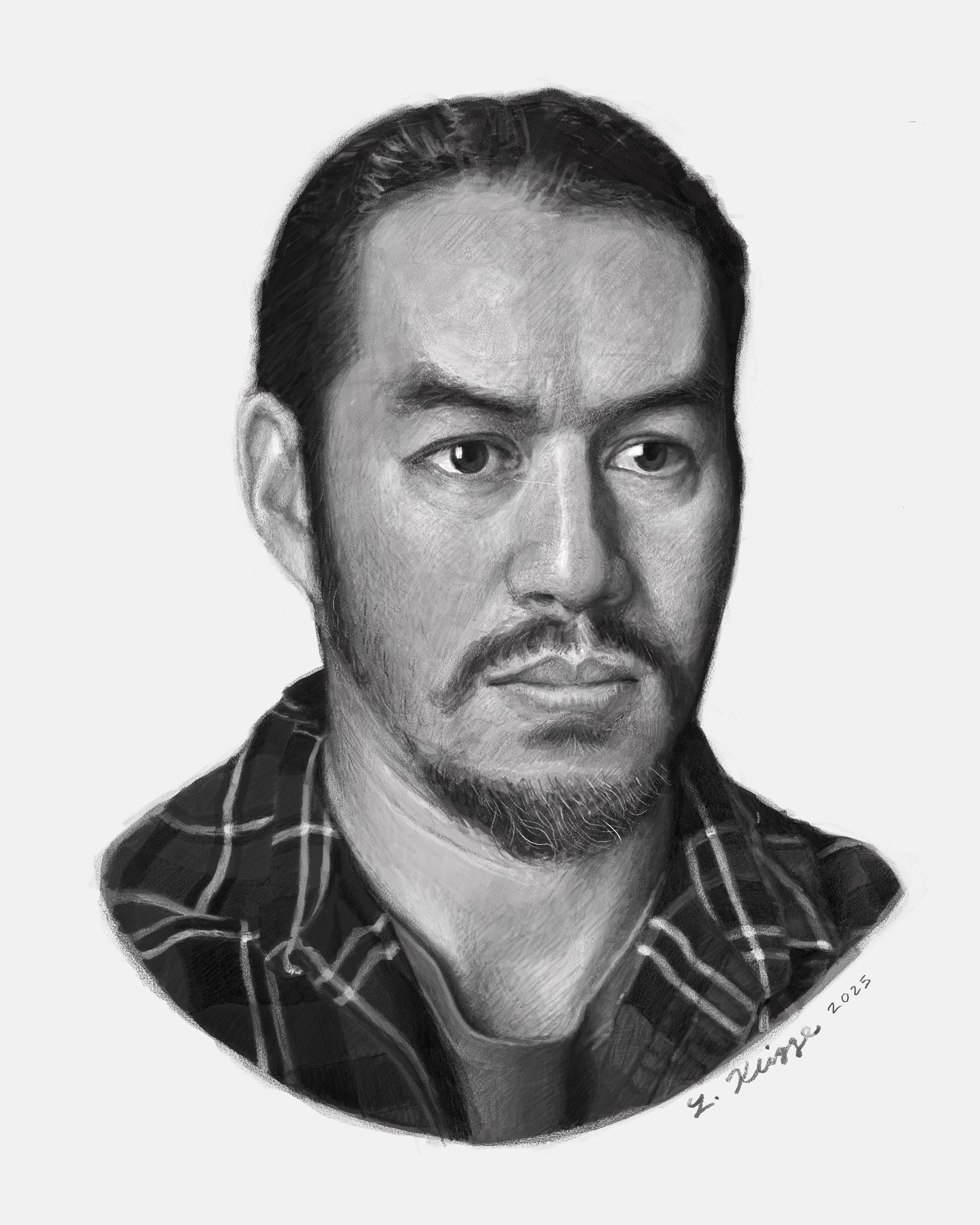 I began by creating a reference photo of myself. It’s true that I could have worked from a mirror, and probably ideally I would have. But a reference photo is convenient in that my pose and lighting stay “locked in place.”